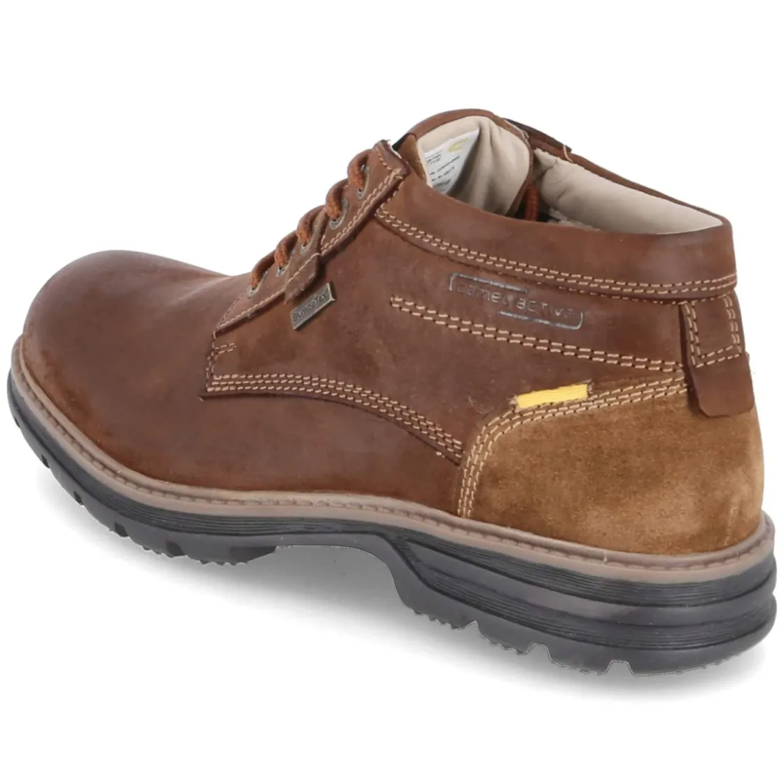 Der Camel Active Winterboot in Braun vereint robuste Funktion und zeitlose Optik. Das Obermaterial aus strapazierfähigem Rauleder ist wasserfest verarbeitet und zugleich atmungsaktiv, sodass der Fuß auch an nassen Wintertagen angenehm trocken bleibt. Ein warmes Futter bietet zuverlässige Wärme, während der rund zulaufende Leisten mit schnürbarem Verschluss sicheren Halt gibt. Der 3 cm hohe Blockabsatz und die rutschhemmende Profilsohle sorgen für Stabilität auf glatten Untergründen. Ein leicht gepolsterter Einstieg und der verstärkte Fersenbereich erhöhen den Tragekomfort, die textile Decksohle unterstützt ein angenehmes Fußklima. Der Boot fällt schmaler aus und bietet gute Kombinationsmöglichkeiten für vielseitige Winterlooks. Modetipp: Besonders stimmig wirkt das Modell zu Raw-Denim, grobem Strick und einem olivfarbenen Parka.