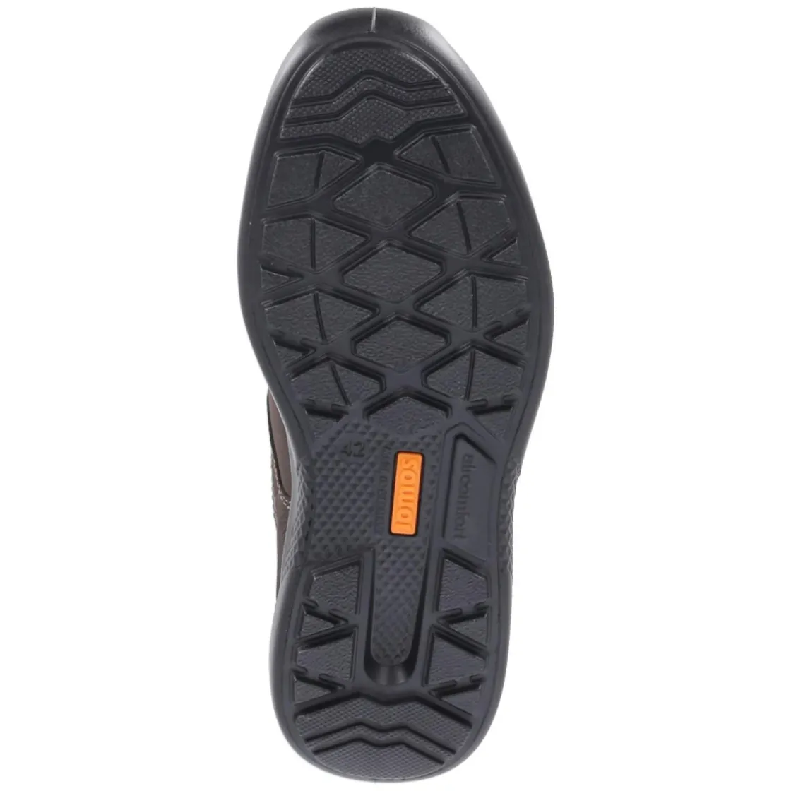 Der Herren-Halbschuh CAMPUS von Jomos verbindet sportliches Design mit alltagstauglichem Komfort. Das Obermaterial aus langlebigem Echtleder in warmem Braun zeigt sich als hochwertiges Rauleder mit wertiger Haptik, die runde Spitze unterstreicht den entspannten Charakter. Schnürsenkel und seitlicher Reißverschluss ermöglichen eine präzise Anpassung und zugleich ein schnelles An- und Ausziehen. Ein leicht gepolsterter Einstieg, der verstärkte Fersen- und Zehenbereich sowie die flexible, rutschfeste Laufsohle sorgen für angenehm sicheren Halt. Die textile Decksohle liegt auf einem komfortablen Wechselfußbett, das bei Bedarf gegen eigene Einlagen getauscht werden kann. Der Schnitt fällt normal aus und passt damit verlässlich im Alltag, ob ins Büro oder in die Freizeit. Modetipp: Zu einer schmalen Chino in Sand und einem feinen Strickpullover entsteht ein smarter Casual-Look, alternativ ergänzt eine dunkelblaue Denim mit Leder-Gürtel in Brauntönen den urbanen Stil.