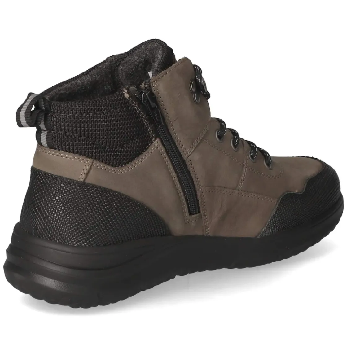 Der Herrenboot WALES 50 von Josef Seibel verbindet urbane Lässigkeit mit funktionaler Robustheit. Das Obermaterial aus Leder und Textil arbeitet mit der TopDryTex-Ausstattung zu einem wasserfesten Material-Mix zusammen, der Nässe zuverlässig abweist. Innen sorgt eine textile Decksohle in Kombination mit einem herausnehmbaren Fußbett für komfortable Dämpfung und die Möglichkeit individueller Einlagen. Die runde Spitze und der verstärkte Zehen- und Fersenbereich geben Schutz im Alltag. Ein praktisches Duo aus Schnürung und zusätzlichem Reißverschluss erleichtert den Einstieg, unterstützt von Anziehlasche und flexibler, rutschhemmender Laufsohle für sicheren Halt auf glatten Wegen. Markendetails akzentuieren das graue Design und machen den Boot vielseitig kombinierbar. Die Passform fällt normal aus. Modetipp: Grau wirkt besonders modern zu indigoblauen Jeans, Wollmantel in Anthrazit und Strickschal in gedeckten Naturtönen.