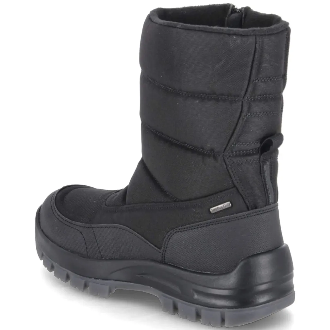 Der Snowboot ALASKA 53 von Josef Seibel bringt verlässliche Wärme und Schutz in Schwarz in winterliche Tage. Ein robustes Textil-Obermaterial mit verstärktem Fußrahmen trifft auf wasserfeste, atmungsaktive Eigenschaften, sodass Nässe draußen bleibt und innen ein angenehm trockenes Klima herrscht. Das kuschelige Teddyfutter und die textile Decksohle umschließen den Fuß weich, während die rutschhemmende Profilsohle auf glatten Wegen Sicherheit vermittelt. Durch den bequemen Reißverschlußeinstieg gelingt das Anziehen mühelos; die runde Schuhspitze und der normale Schnitt bieten entspannten Platz. Der Schaft misst etwa 22 Zentimeter in der Höhe und 32 Zentimeter im Umfang, was Halt und Beweglichkeit ausbalanciert. Das wechselbare Fußbett erlaubt individuelle Einlagen. Modetipp: In Kombination mit dunkler Cargohose, grobem Strickpullover und Parka entsteht ein funktionaler, urbaner Winterlook.
