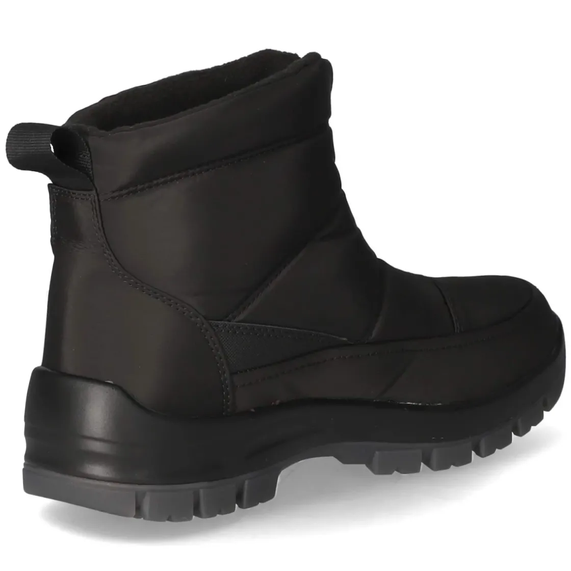 Der Snowboot ALASKA 54 von Josef Seibel bringt zuverlässigen Schutz und Komfort in winterliche Tage. Das schwarze Obermaterial aus robustem Textil trifft auf ein rund zulaufendes Design und eine verstärkte Zehen- und Fersenkappe, während ein stabiler Fußrahmen zusätzliche Unterstützung bietet. Warmfutter und isolierende Ausstattung halten die Füße angenehm temperiert, die wasserfeste Konstruktion mit wasserabweisender Oberfläche schirmt Nässe ab. Ein bequemer Reißverschlußeinstieg samt Anziehlasche erleichtert das Handling; die textile Decksohle ruht auf einem herausnehmbaren Wechselfußbett. Die flexible, rutschhemmende Profilsohle sorgt für Grip auf glatten Wegen. Fällt normal aus und zeigt das dezente Markenlogo als stilvolles Detail. Modetipp: In Kombination mit dunkler Cargohose, Wollsocken und einem gesteppten Parka entsteht ein funktionaler Outdoor-Look, der urban wirkt und gleichzeitig winterfest bleibt.