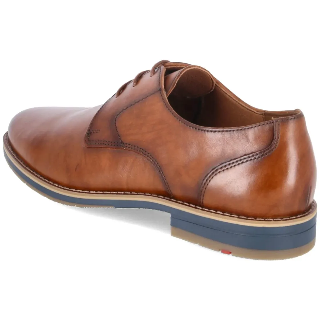 Der Halbschuh DRIFT 110 von LLoyd vereint klassisches Design mit alltagstauglichem Komfort. Glattes, langlebiges Echtleder in warmem Braun trifft auf eine flexible, rutschfeste Laufsohle, deren blauer Rand einen dezenten Akzent setzt. Die runde Kappe und der 3 cm hohe Blockabsatz sorgen für ein ausgewogenes Tragegefühl, während Schnürsenkel Halt und Anpassung ermöglichen. Ein bequemes Fersenpolster sowie die verstärkte Ferse unterstützen Stabilität und Formbeständigkeit – ideal als gepflegter Anzugschuh. Die pflegeleichte Decksohle aus Synthetik ergänzt den praktikablen Charakter. Dank normaler Passform fällt das Modell größengetreu aus und bietet vielseitige Kombinationsmöglichkeiten vom Meeting bis zum Dinner. Modetipp: Zu navyfarbenem Anzug und braunem Ledergürtel entsteht ein harmonischer Business-Look, der den blauen Sohlenrand mit einer gemusterten Krawatte subtil aufgreift.