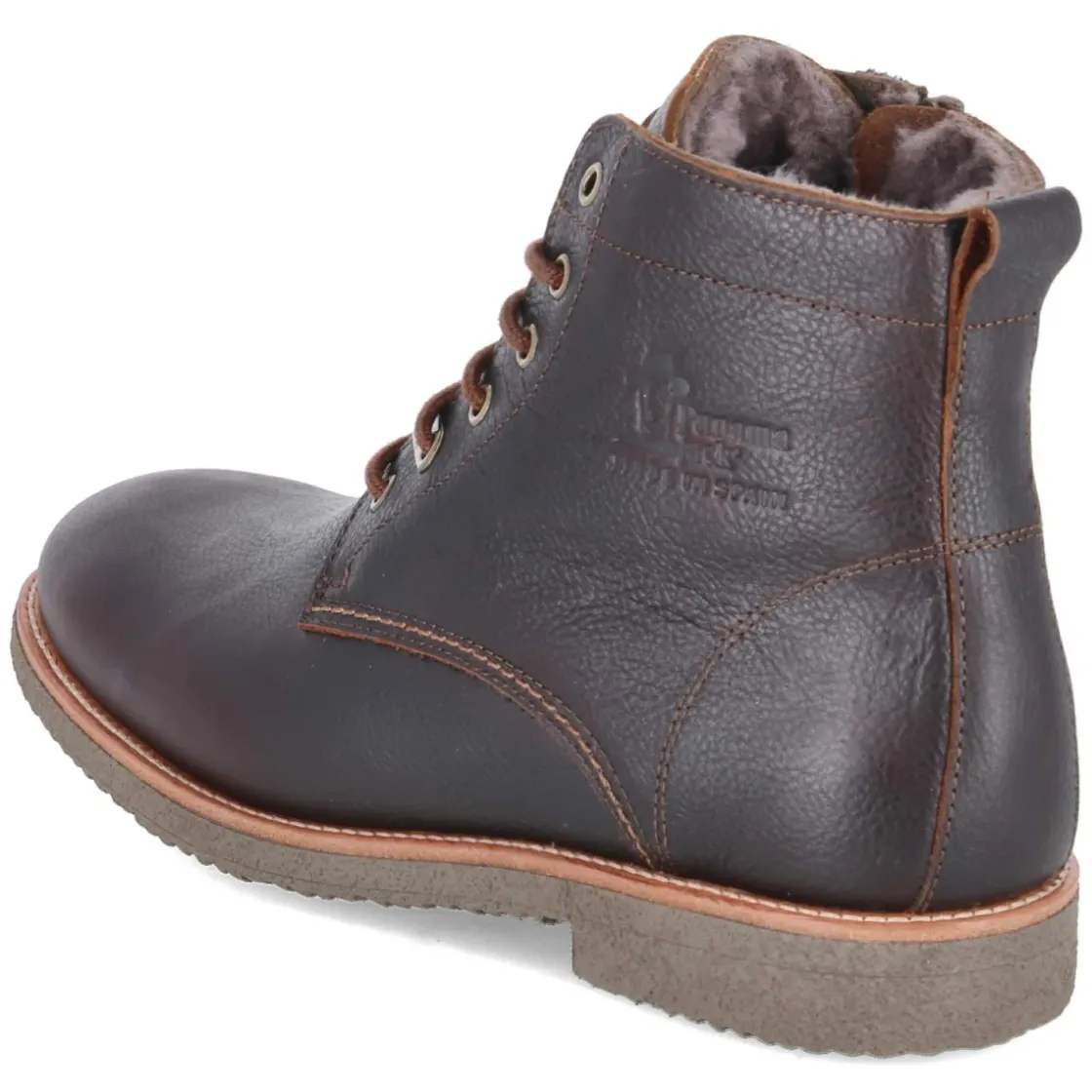 Winterboots GERMAN IGLOO C 2 von Panama Jack vereinen robuste Funktion und zeitlosen Stil. Glattes, wasserabweisendes Obermaterial in warmem Braun schützt vor nassem Schneematsch, während das weiche Lammfellfutter zuverlässig wärmt. Dank Schnürung und seitlichem Reißverschluss gelingt der Einstieg komfortabel; Anziehlasche und verstärkter Fersenbereich sorgen für zusätzliche Stabilität. Die rutschfeste, flexible Laufsohle und der 3 cm hohe Blockabsatz bieten sicheren Halt auf winterlichen Wegen. Runde Schuhspitze und eine Lederdecksohle erhöhen den Tragekomfort, die Passform fällt normal aus. Vielseitig kombinierbar vom Stadtbummel bis zum Ausflug ins Umland. Modetipp: mit dunkelblauer Raw Denim, rustikalem Strickpullover und einem Wollmantel in Camel kommt der Braunton edel zur Geltung.