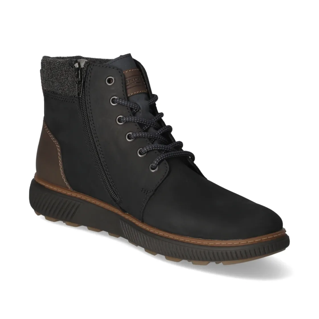 Der Herren-Winterboot von Rieker in sattem Blau kombiniert einen modernen Material-Mix aus Leder und Synthetik mit funktionalen Details für kalte Tage. Warmfutter hält zuverlässig die Wärme, während der gepolsterte Einstieg und die runde Spitze für entspannte Bewegungsfreiheit sorgen. Schnürsenkel ermöglichen variable Anpassung, der seitliche Reißverschluss schenkt einen bequemen Einstieg. Das komfortable, herausnehmbare Wechselfußbett mit textiler Decksohle unterstützt den Fuß auch bei langen Strecken. Ziernähte und eine verstärkte Ferse betonen die robuste Optik, die Anziehlasche erleichtert das Hineinschlüpfen. Die flexible, rutschhemmende Profilsohle bietet sicheren Halt auf winterlichen Untergründen – ideal für Alltag und Freizeit. Modetipp: Mit dunkler Raw-Denim, grobem Strickpullover und wattiertem Parka entsteht ein lässiger City-Winterlook.