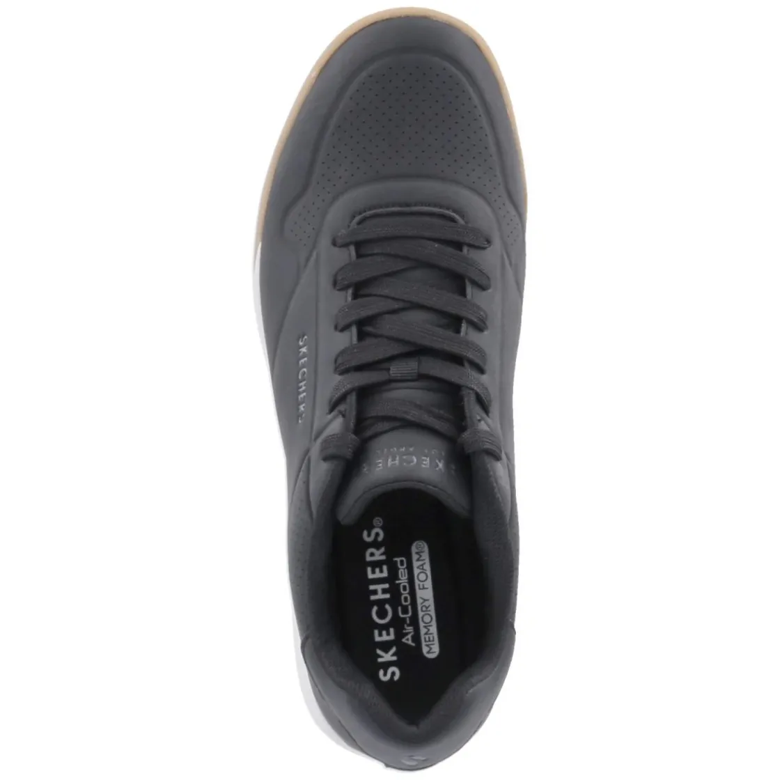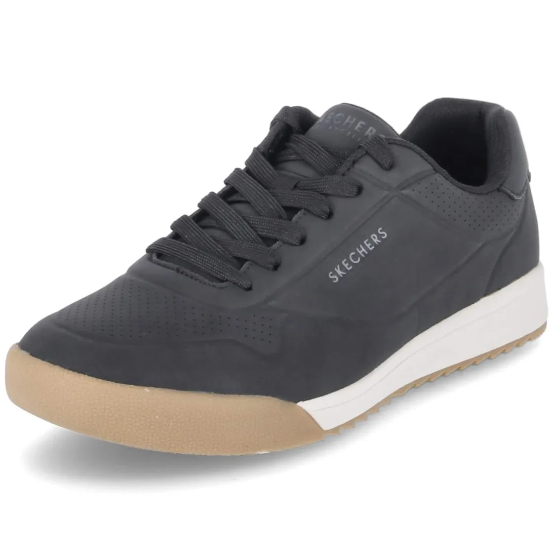 Der Low Sneaker ZINGER 2.0 von Skechers vereint klare Linien mit durchdachter Funktion. Das Obermaterial aus Synthetik zeigt eine pflegeleichte Oberfläche, die ihren satten Schwarzton lange bewahrt, während dynamische Prägungen und dezente Markendetails die moderne Optik akzentuieren. Innen sorgt eine textile Decksohle zusammen mit der besten Memory-Foam-Fußbettung für weiche Dämpfung und komfortable Anpassung an den Fuß. Der gepolsterte Einstieg schont den Knöchel, die rund geformte Schuhspitze bietet Bewegungsfreiheit. Ein verstärkter Zehen- und Fersenbereich erhöht die Strapazierfähigkeit im Alltag. Die flexible, rutschfeste Cupsohle gibt Halt auf unterschiedlichen Untergründen. Mit normal ausfallender Passform und klassischem Schnürverschluss lässt sich der Schuh mühelos integrieren – vom Büro bis in die Freizeit. Modetipp: Für einen smart-sportiven Look mit dunkler Slim-Jeans, weißem T-Shirt und einer leichten Bomberjacke kombinieren; eine clean designte Uhr rundet das Ensemble ab.