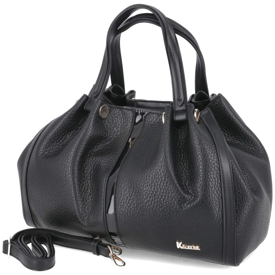 Elegante Handtasche in klassischem Schwarz, die femininen Stil und kluge Organisation verbindet. Mit ca. 25 x 37 x 15 cm und rund 13 Litern Volumen bietet sie Platz für A4-Unterlagen, Tablet und Alltagsessentials. Ein Magnetverschluss ermöglicht schnellen Zugriff, während das RV-Hauptfach Sicherheit schafft. Innen sorgen zwei Steckfächer, zwei Stiftplätze und ein zusätzliches Reißverschlussfach für Übersicht. Goldglänzende Metallelemente setzen luxuriöse Akzente, zwei feste Tragehenkel und ein verstärkter Boden garantieren Formstabilität. Der abnehmbare, verstellbare Schultergurt bis ca. 140 cm erweitert die Tragemöglichkeiten vom Büro bis zum Dinner. Modetipp: Zu monochromen Looks mit Blazer und schmaler Hose kombinieren und mit goldfarbenem Schmuck die Hardware aufgreifen; Slingbacks oder spitze Loafer vollenden den eleganten Auftritt.