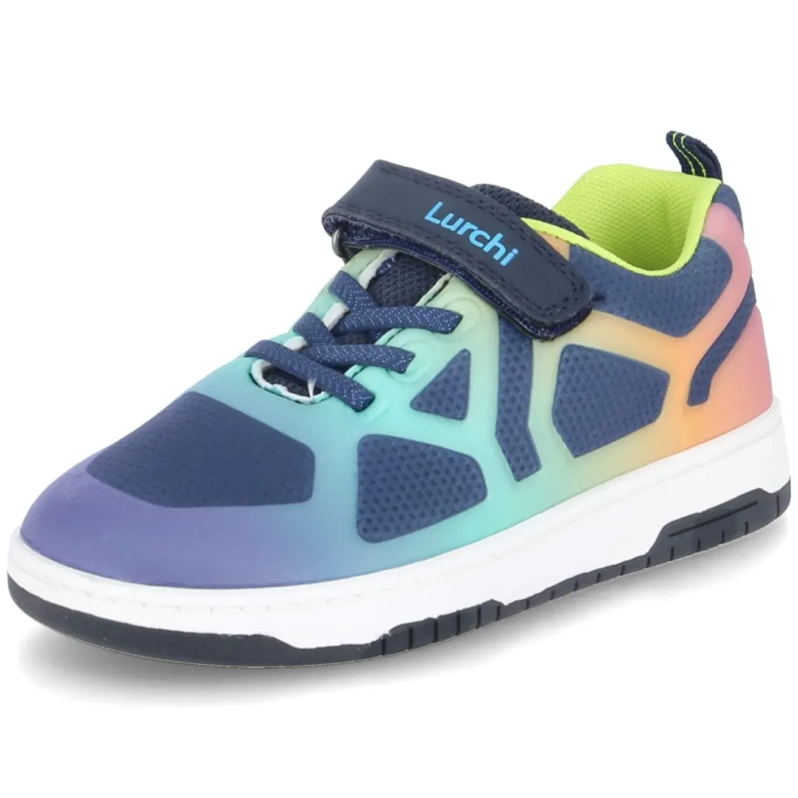 Der Low Sneaker von Lurchi verbindet sportliche Leichtigkeit mit kindgerechter Funktion. Das moderne Obermaterial aus Textil und Synthetik zeigt in Blau einen lebendigen Farbverlauf mit Regenbogenakzenten, während die runde Schuhspitze und der verstärkte Zehen- sowie Fersenbereich zusätzlichen Schutz bieten. Ein bequemer Klettverschluss mit einem Klettriemen erleichtert das An- und Ausziehen und sorgt für sicheren Halt. Dank gepolstertem Einstieg und geringem Gewicht bleibt der Tragekomfort den ganzen Tag hoch. Die flexible, rutschhemmende Laufsohle unterstützt natürliche Bewegungen und bietet Griffigkeit auf unterschiedlichen Untergründen. Ein Wechselfußbett aus Textil erhöht die Hygiene und Anpassbarkeit, die Passform fällt normal aus. Gelabelte Details runden das Design ab. Modetipp: Zu Jeansshorts, farblich abgestimmten Socken und einem leichten College-Cardigan entsteht ein frischer Look, der die Regenbogen-Highlights dezent aufgreift.