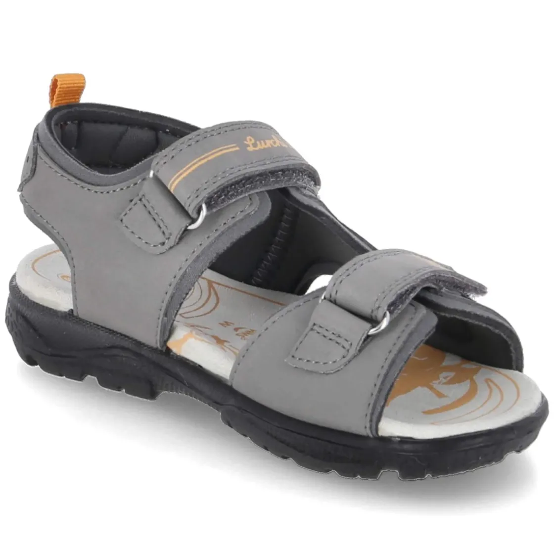 Die Sandalen KINJA von Lurchi bringen mit grauem Obermaterial aus Textil und Synthetik und einem orangen Ninja-Print Schwung in sommerliche Kinder-Outfits. Der moderne Material-Mix liegt leicht am Fuß, das weiche Lining und ein dämpfendes Fußbett steigern den Tragekomfort vom ersten Schritt an. Zwei praktische Klettverschlüsse und eine Anziehlasche erleichtern das Handling, während die offene Schuhspitze luftige Frische bietet. Die sehr flexible Profilsohle sorgt für gute Trittsicherheit auf Spielplatz, Schulweg und im Urlaub. Dank Weite W haben auch kräftigere Füße ausreichend Platz, gleichzeitig fällt das Modell insgesamt normal aus. Die bedruckte Optik bleibt alltagstauglich und macht Lust auf Bewegung. Modetipp: Zu Bermudas in Grau oder Schwarz und einem T‑Shirt mit orangenen Akzenten entsteht ein harmonischer Look; leichte Sportsocken oder barfuß funktionieren gleichermaßen.