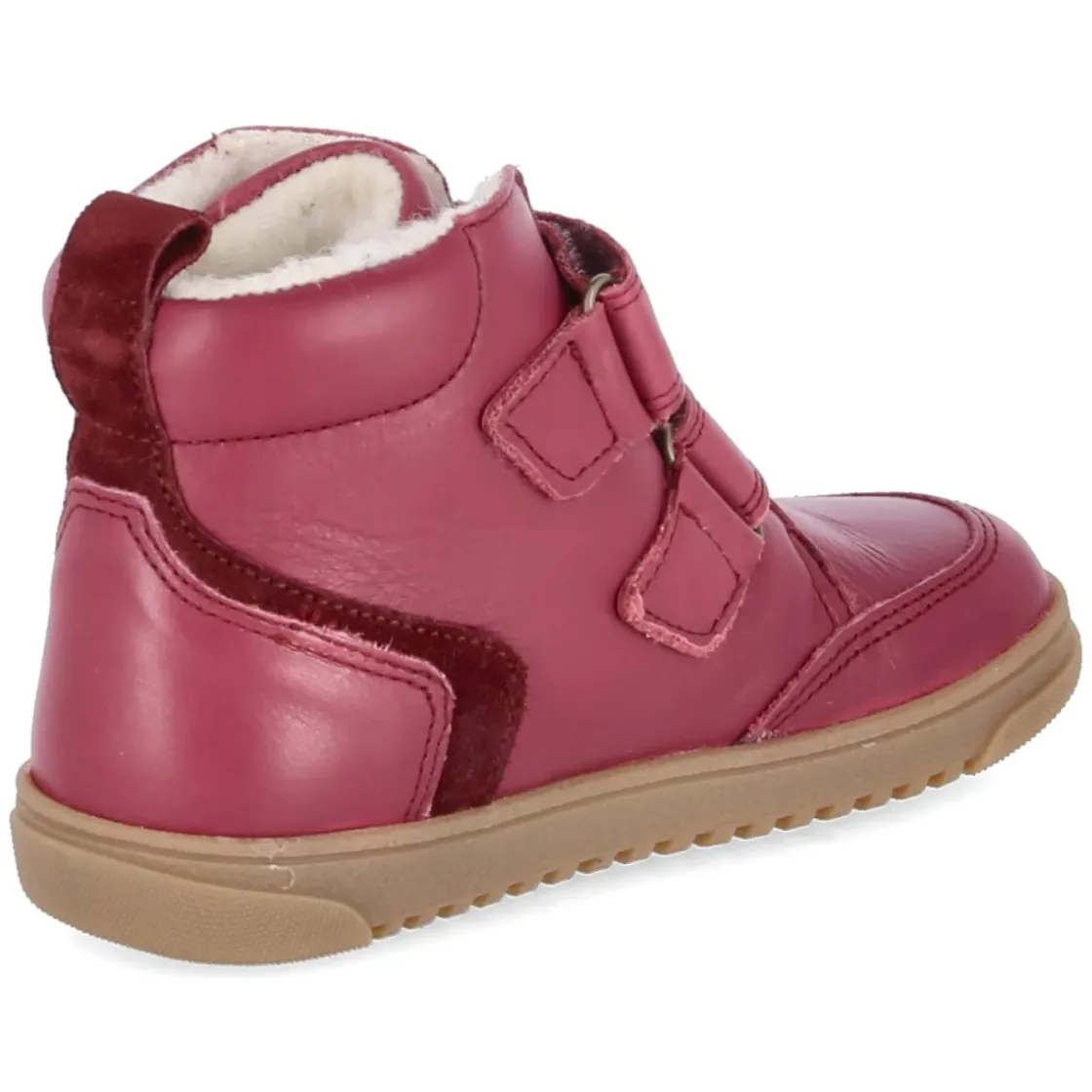Die Winterstiefeletten MILIO von Lurchi vereinen robustes Glattleder mit kindgerechtem Komfort. Das warme Futter umschließt die Füße angenehm und hält zuverlässig die Kälte ab, während die atmungsaktive Verarbeitung für ein ausgeglichenes Fußklima sorgt. Dank wasserabweisender Eigenschaften bleiben Abenteuer auf nassen Wegen ungetrübt. Zwei praktische Klettverschlüsse ermöglichen einen schnellen Einstieg und bieten sicheren Halt, der gepolsterte Schaft schont den Knöchel. Die rutschhemmende, dünne und flexible Laufsohle unterstützt ein natürliches Abrollen, die runde Spitze schafft Bewegungsfreiheit, der verstärkte Fersenbereich erhöht die Stabilität. Die textile Decksohle ergänzt den weichen Tragekomfort, die Passform fällt normal aus. Modetipp: Das leuchtende Rot setzt zu dunkler Thermohose und kuscheligem Strickpulli einen fröhlichen Akzent.