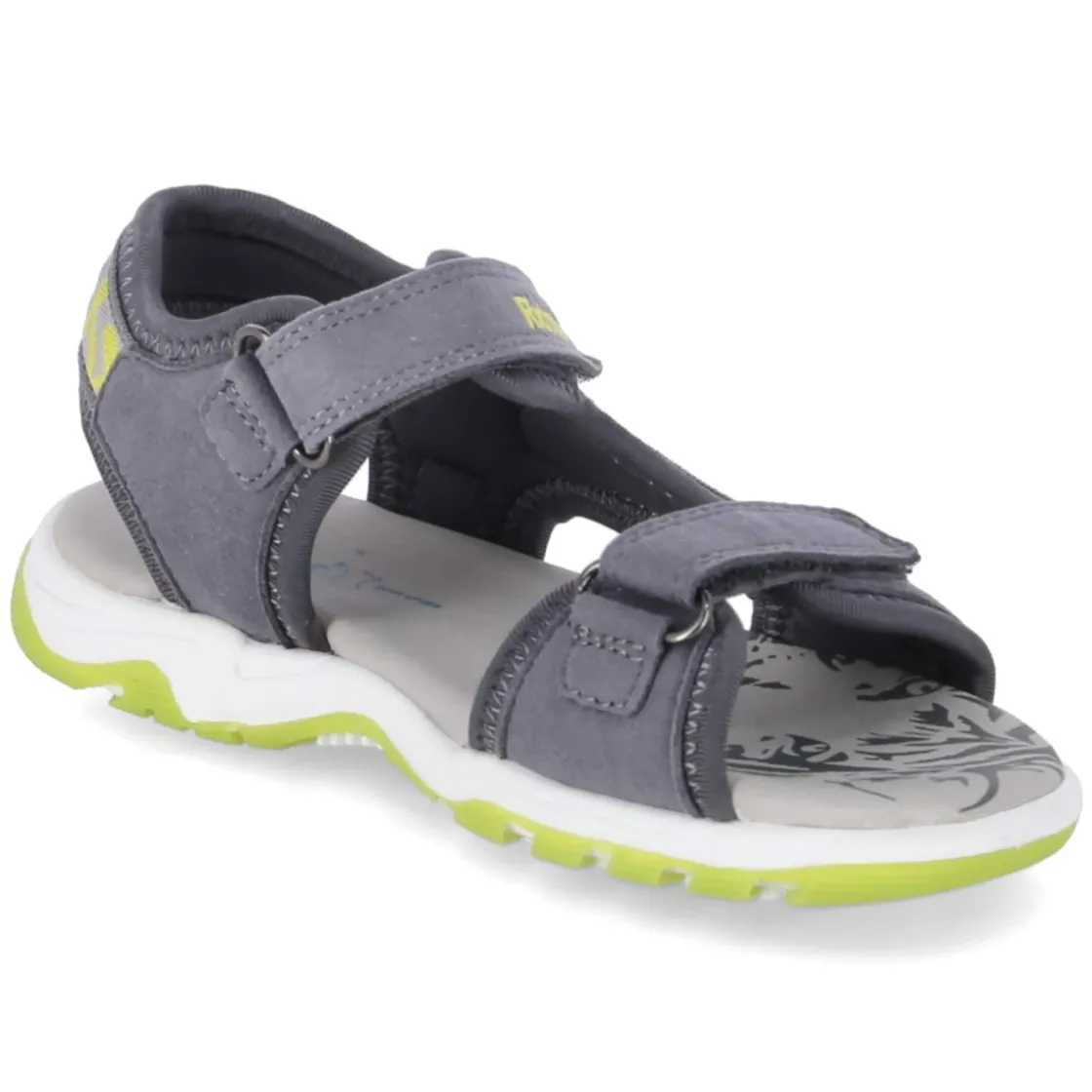 Diese Kinder-Sandalen von Richter verbinden Alltagstauglichkeit mit sommerlichem Komfort. Das robuste Textilobermaterial in Grau hält auch lebhaften Abenteuern stand, während gelbe Akzente frische Energie ins Design bringen. Innen sorgt ein leichtes Textilfutter für angenehmes Klima, die Decksohle aus Leder schmiegt sich weich an und unterstützt ein gutes Fußgefühl. Dank der praktischen Klettverschlüsse lassen sich Passform und Halt unkompliziert regulieren, die offene Schuhspitze bietet viel Bewegungsfreiheit. Die flexible, griffige und rutschhemmende Laufsohle gibt Sicherheit auf verschiedensten Untergründen – ideal für Spielplatz, Schulhof und Urlaub. Der Fit fällt normal aus und begeistert mit vertrauter Richter-Qualität. Modetipp: Harmoniert besonders schön mit sportlichen Shorts, gestreiften T-Shirts und leichten Hoodies; gelbe Details in Socken oder Cap greifen den Kontrast stilvoll auf.