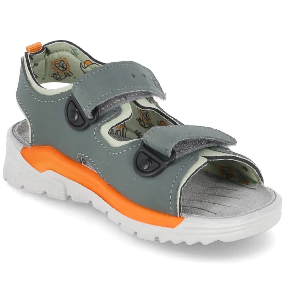 Die Kinder-Sandale SURF von Ricosta vereint unkomplizierte Pflege mit hohem Tragekomfort. Das grüne Obermaterial aus Synthetik wird von orangefarbenen Elementen akzentuiert und harmoniert mit der offenen Schuhspitze, die angenehme Luftzirkulation ermöglicht. Zwei praktische Klettriemen samt Klettverschluss sorgen für eine individuell regulierbare Passform, während ein weiches Lining und die hautfreundliche Lederdecksohle für angenehmes Fußklima stehen – auch barfuß. Die flexible Laufsohle unterstützt natürliche Bewegungen im Alltag, auf dem Spielplatz oder im Urlaub. Fällt normal aus und ist waschmaschinengeeignet, wodurch die Reinigung denkbar leicht wird. Modetipp: Zu olivfarbenen Cargo-Shorts, einem weißen Jersey-Shirt und sportlichen Söckchen greifen; ein Accessoire in Orange nimmt die Akzente der Sandale stilvoll auf.
