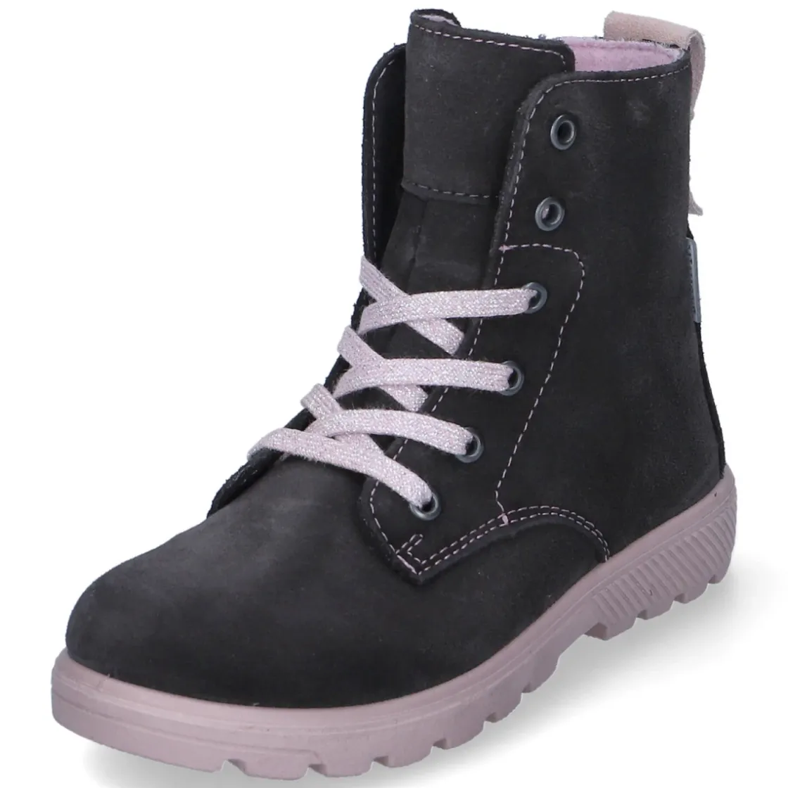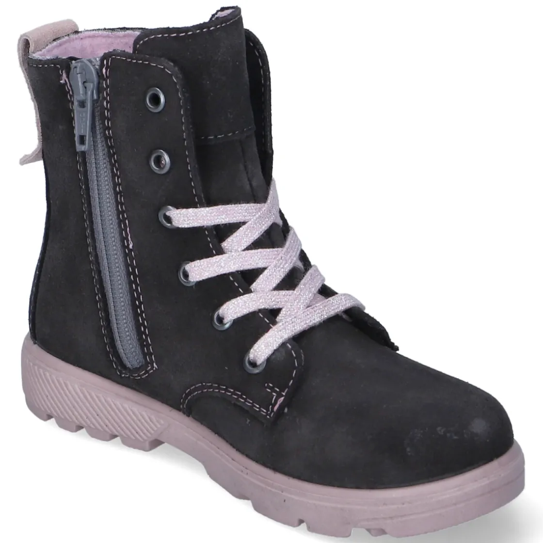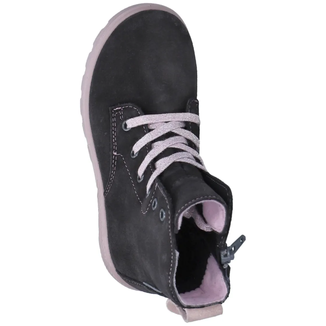 Die Schnürstiefeletten ANNI von Ricosta vereinen kindgerechten Komfort mit verlässlicher Funktion. Weiches Rauleder in Grau wird von zarten rosa Akzenten begleitet, während RicostaTEX die wasserfeste und atmungsaktive Performance für nasse Wege und kühle Tage sichert. Das leichte Fleecefutter hält angenehm warm, ohne zu beschweren. Der runde Leisten gibt Zehenfreiheit, der verstärkte Fersenbereich stabilisiert, und der gepolsterte Einstieg schont empfindliche Knöchel. Schnürung und Reißverschluss ermöglichen einen passgenauen Sitz bei gleichzeitig mühelosem Einstieg. Eine gepolsterte, herausnehmbare Decksohle unterstützt den Fuß, die flexible, rutschhemmende Profilsohle sorgt für sicheren Halt. Mit normaler Passform und praktischer Anziehlasche perfekt für den Alltag in Kita und Freizeit. Modetipp: Zu Thermoleggings, Strickkleid und Parka in Beerentönen setzen die rosa Details einen harmonischen Farbakzent.