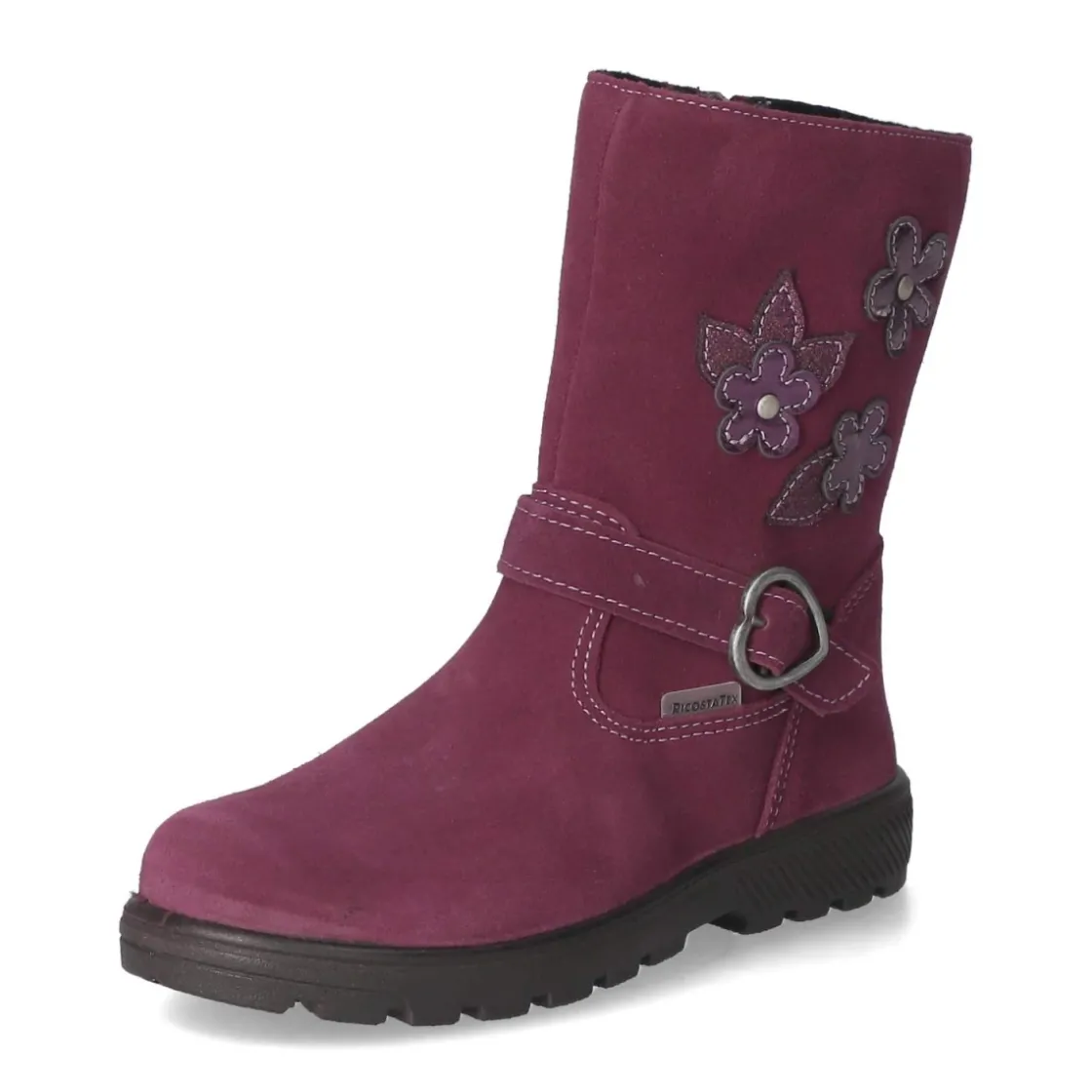 Die Stiefeletten GRETA von Ricosta verbinden kindgerechten Komfort mit verspielter Optik. Das sehr weiche Rauleder zeigt sich in lebhaftem Violett und wird von hübschen Blumenmotiven, modischen Ziernähten und einem Zierriemen akzentuiert. Ein weiches Warmfutter sowie die textile Wechseldecksohle sorgen für behagliches Klima, während Ricosta-Tex verlässlichen Nässeschutz und Atmungsaktivität bietet. Der seitliche Reißverschluss ermöglicht einen bequemen Einstieg, die runde Spitze und das normale Größenprofil schenken zusätzlichen Tragekomfort. Eine flexible, rutschhemmende Profilsohle begleitet sichere Schritte auf nassem und trockenem Untergrund. Modetipp: Zu Thermoleggings, Strickkleid und Steppjacke setzt das Violett frische Akzente.