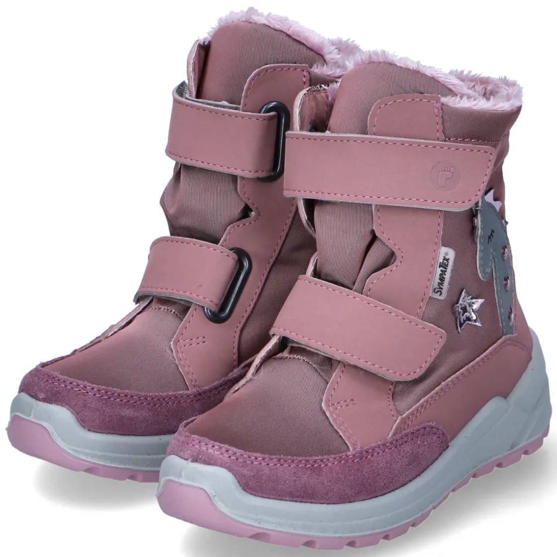 Die Winterstiefeletten ANNIKA von Ricosta begleiten aktive Tage im Schnee mit zuverlässigem Schutz und verspieltem Design. Das warme Futter hält angenehm kuschelig, während die SympaTEX-Ausstattung wasserfesten und zugleich atmungsaktiven Komfort bietet. Der runde Leisten gibt Zehen Bewegungsfreiheit, die rutschhemmende Profilsohle sorgt für Grip auf winterlichen Wegen. Praktische Klettverschlüsse erleichtern das An- und Ausziehen und sichern den Sitz, ein gepolsterter Einstieg und die herausnehmbare, weich gedämpfte Decksohle erhöhen den Tragekomfort. Blinkende LED´s, Einhorn-Applikation sowie graue und glänzende Akzente setzen fröhliche Highlights, Ziernähte und verstärkter Fußrahmen steigern Haltbarkeit. Der Schnitt fällt normal aus. Modetipp: Zu Thermo-Leggings, Strickkleid und wattiertem Parka entsteht ein farbenfroher Winterlook.
