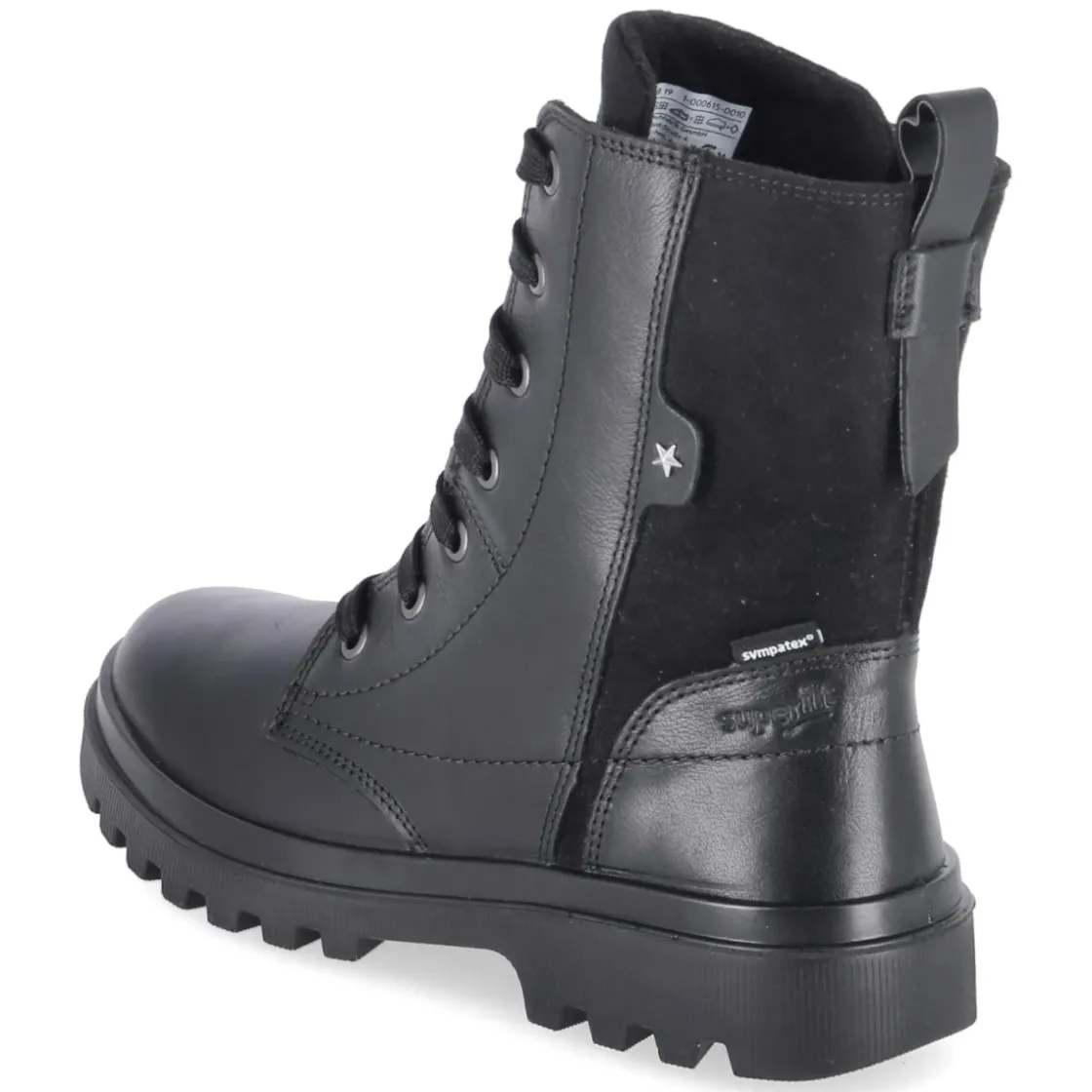 Die Winterstiefeletten ABBY NOVA von Superfit vereinen robusten Schutz und kindgerechten Komfort. Der wasserfeste Material-Mix mit Sympatex hält Nässe zuverlässig ab, während warmes Futter die Füße an kalten Tagen angenehm einhüllt. Ein runder Leisten, 3 cm Blockabsatz und die flexible Laufsohle mit ausgeprägtem Grip bieten Stabilität auf glatten Wegen. Schnürsenkel sorgen für die individuelle Passform, der zusätzliche Reißverschluss erleichtert das schnelle An- und Ausziehen. Leder- und Textilobermaterial, textile Decksohle sowie ein Wechselfußbett ermöglichen bedarfsgerechte Anpassung. Die verstärkte Ferse, eine praktische Anziehlasche, ein klassisches Design in Schwarz und der kleine Silberstern am Schaft runden den Look ab; der Schaft misst ca. 16 cm x 22 cm und die Passform fällt normal aus. Modetipp: Zur schwarzen Stiefelette passen Thermojeans, ein wattierter Parka und eine gerippte Beanie in Kontrastfarbe.